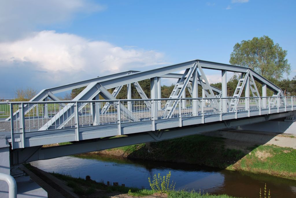 Kratowy most drogowy konstrukcji spawanej z pomostem trwałym według projektu prof. S. Bryły