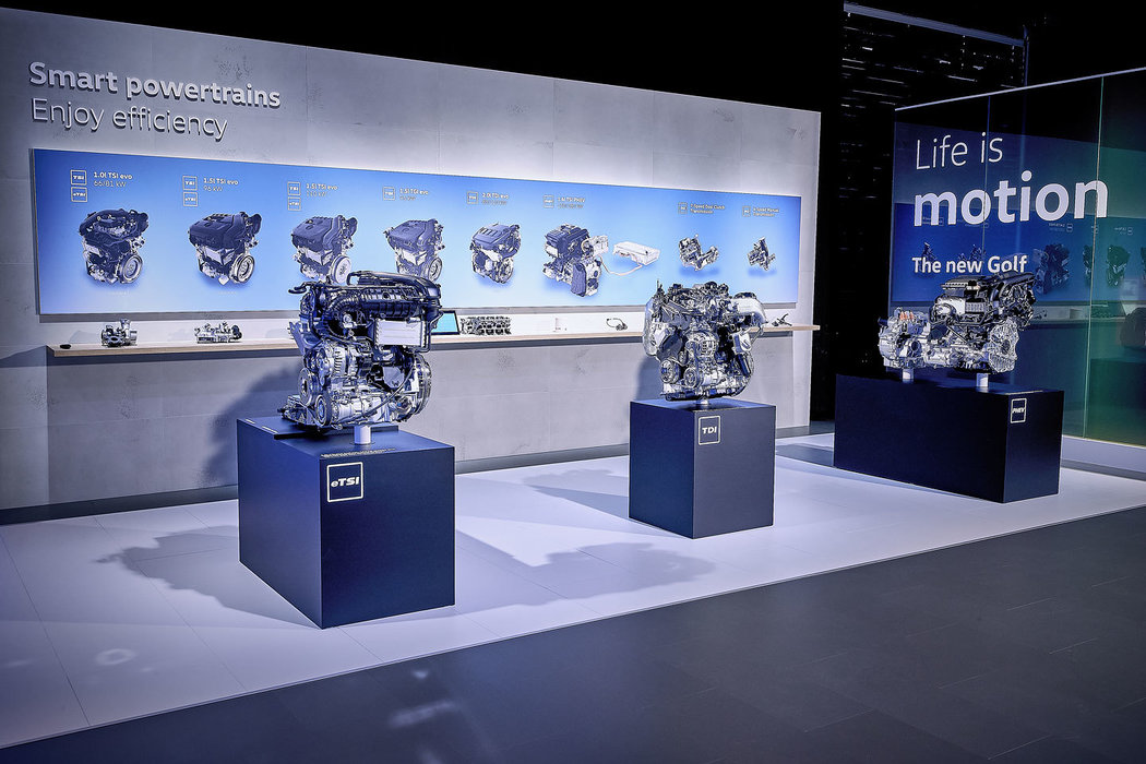 Do nowego Golfa będą oferowane silniki benzynowe (TSI), Diesla (TDI), zespoły napędowe typu Mild-Hybrid (eTSI) oraz zespoły hybrydowe typu plug-in (eHybrid). Wszystkie silniki benzynowe i Diesla wyposażono w bezpośredni wtrysk paliwa oraz w turbosprężarki. Spektrum mocy tych jednostek – gdy wszystkie znajdą się w sprzedaży – wyniesie od 66 kW/90 KM do ponad 221 kW/300 KM. Nowością są dwa trzycylindrowe silniki benzynowe o mocy 66 kW/90 KM i 81 kW/110 KM oraz dwa czterocylindrowe diesle osiągające moc 85 kW/115 KM i 110 kW/150 KM. Nowe jednostki benzynowe działają – to nowość – w innowacyjnym cyklu Millera dla silników TSI, wykazując bardzo niskie zużycie paliwa i niską emisję szkodliwych substancji. Z kolei w jednostkach TDI Volkswagen, jako nowość, zastosował dwukrotny wtrysk czynnika AdBlue (Twindosing), znacznie zmniejszając emisję tlenków azotu (NOx).