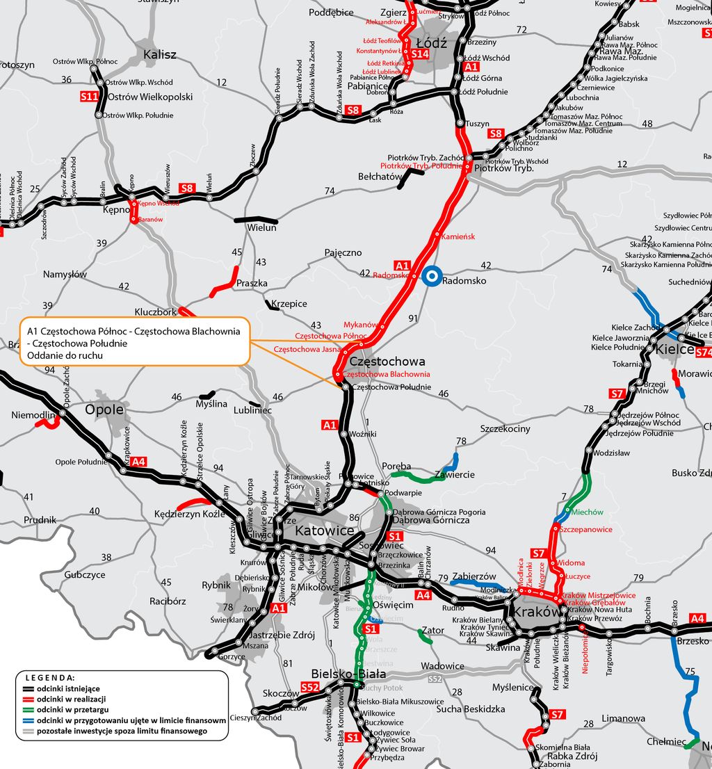 GDDKiA udostępnia do ruchu trasę główną i zapewni pełną funkcjonalność węzłów Częstochowa Północ i Częstochowa Południe. To pozwoli wyprowadzić ruch tranzytowy z miasta, zarówno pojazdów ciężarowych jak i osobowych. Węzły Częstochowa Blachownia i Częstochowa Jasna Góra udostępniony zostanie dla ruchu w późniejszym terminie, po zakończeniu niezbędnych prac.