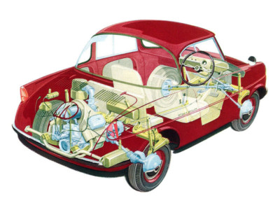 W tylnej części pojazdu zamontowano dwucylindrowy silnik widlasty OHV o pojemności skokowej 356 cm3 i mocy 16 KM przy 5300 obr./min oraz maksymalnym momencie obrotowym 22 Nm przy 4200 obr./min, współpracującym z czterobiegową przekładnią mechaniczną lub dwustopniowym automatem. Średnie zużycie paliwa nie przekraczało 3 l/100 km.