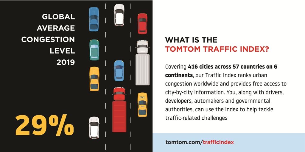 W ciągu ostatniej dekady natężenie ruchu wzrosło na całym świecie, a 239 miast (57%), które firma TomTom uwzględniła w nowym raporcie, zwiększyło poziom natężenia ruchu w 2019 r., przy czym tylko 63 miasta wykazały wymierne spadki. Ten globalny wzrost natężenia ruchu, mimo że jest wskaźnikiem silnej gospodarki, kosztuje ją miliardy.