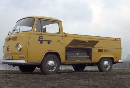 Minęło już 50 lat odkąd w siedzibie Volkswagena w Wolfsburgu położono dość kruche wtedy podstawy do rozwoju mobilności elektrycznej. Dokładnie w roku 1970, konstruktorzy Bulli’ego i Garbusa utworzyli w Wolfsburgu dział rozwoju, którego praca zaowocowała wymyśleniem pierwszego w historii elektrycznego Volkswagena. Już wtedy celem koncernu było wykorzystanie alternatywnych źródeł energii, tak by stać się mniej zależnym od paliw kopalnych i poruszać się ulicami miast z zerową emisją. W 1972 roku firma pokazała pierwszy prototyp na targach w Hanowerze. Miał on postać pick-upa z odkrytą skrzynią ładunkową. Niedługo potem rozpoczęła się produkcja krótkiej serii elektrycznych furgonetek. Volkswagen T2 Elektro-Transporter oferowany był nie tylko jako pick-up, ale też jako minibus i furgonetka, a jego ładowność wynosiła 800 kg., i to pomimo dużej jak na współczesne standardy wagi akumulatora – 850 kg.