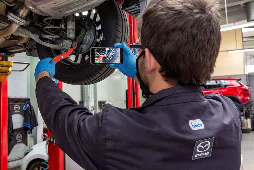Stacje serwisowe Mazdy w całej Polsce sukcesywnie wdrażają innowacyjną usługę serwisową SkyVIDEO. To platforma, która pozwala na zdalny kontakt z Klientem podczas obsługi samochodu i daje możliwość podjęcia decyzji o zleceniu dodatkowych napraw online w prosty i przejrzysty sposób. Po rozpoczęciu przeglądu i zdiagnozowaniu ewentualnych usterek, doradca serwisowy nagrywa filmy, opisując zakres przeprowadzonych prac oraz stan najważniejszych podzespołów auta i wskazuje na nich elementy wymagające wymiany lub naprawy.