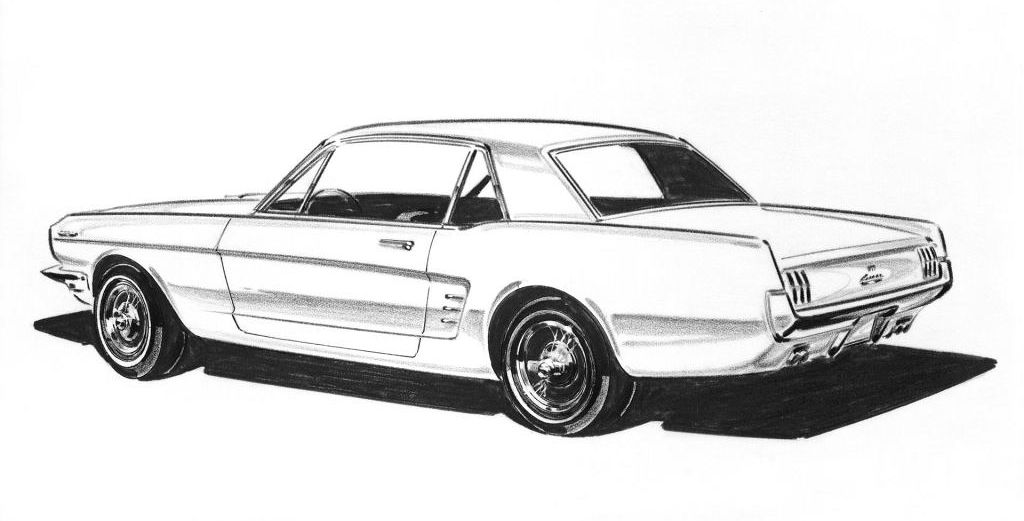 Słynny model sportowej ikony narodził się w 1962 roku w formie czarno-białego szkicu, który nadał kształt pierwszej generacji Forda Mustanga. To jego projekt wygrał wewnętrzny konkurs na wygląd nowego Forda. Halderman był jednym z fundamentów zespołu, który pod kierownictwem Lee Iacokki stworzył pierwszy “pony car” w historii – sportowy samochód dostępny dla mas. Najpierw powstały wersje cabrio i coupe, a rok później fastback ze ściętym nadwoziem.
