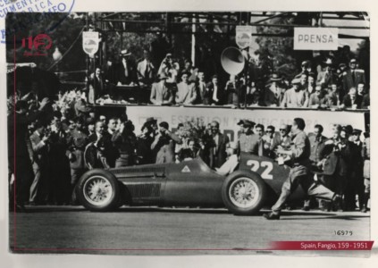 Dwie zupełnie różne epoki „stają naprzeciw siebie twarzą w twarz”: w 1950 r. nie było obowiązku noszenia kasku przez startujących kierowców, nie było telewizji, a publiczność ustawiała się wzdłuż toru wyścigowego. Dzisiaj „transmisje” Formuły 1 to ultratechnologiczny, globalny przemysł, a relacje docierają w każdym sezonie do 400 milionów widzów zgromadzonych przed telewizorami lub przeglądających strony internetowe.![]()