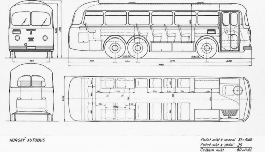 Górski autobus miał długość 9,42 m, szerokość 2,35 m, a więc był o 113 cm krótszy i o 15 cm węższy niż produkowany w latach 1947-1958 autobus Skoda 706 RO. W środkowej części pod podłoga autobusu wygospodarowano pojemna przestrzeń bagażową, dostępną z obu stron pojazdu.