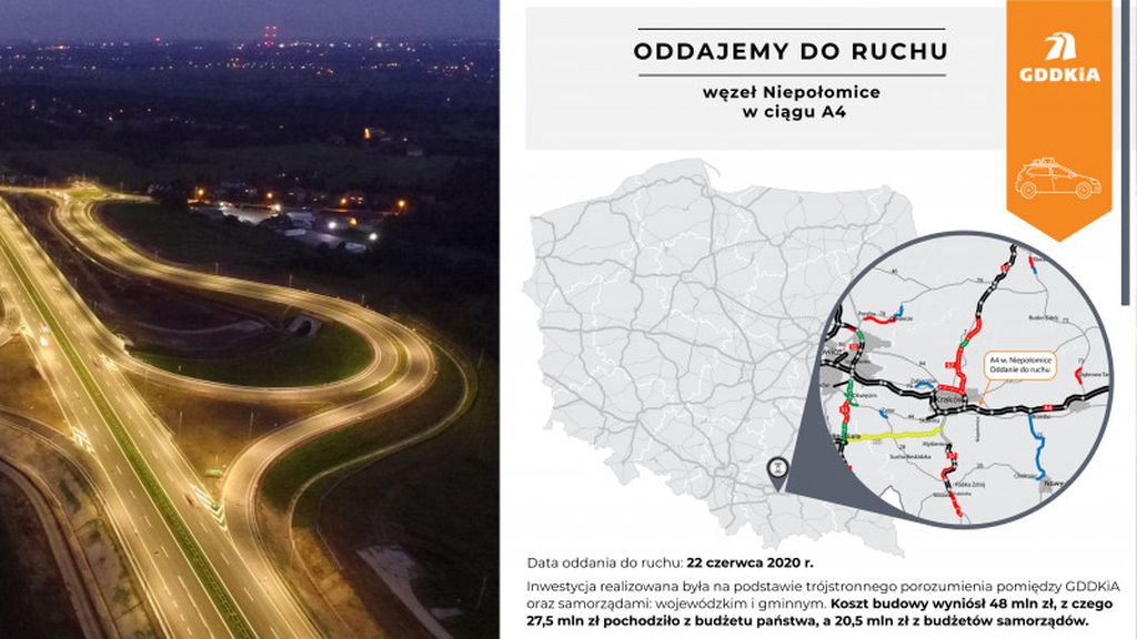 Węzeł Niepołomice został ukończony, wszystkie odbiory wykonanych prac są pomyślne, nadzór budowlany wydał pozwolenie na użytkowanie. 22 czerwca 2020 r. pierwsi kierowcy mogą wjechać na autostradę A4 łącznicami węzła i zjechać nimi na drogę wojewódzką nr 964, zarówno od strony Krakowa jak i Tarnowa. Węzeł powstał dzięki dobrej współpracy z samorządami.