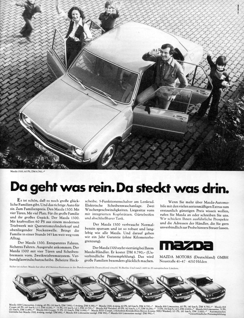 [1] Większość modeli sprzedawanych w Europie wyposażona była w silnik tłokowy, jak serie 616, 818 oraz 929, w przeciwieństwie do wyposażonych w silnik Wankla modeli z serii RX
