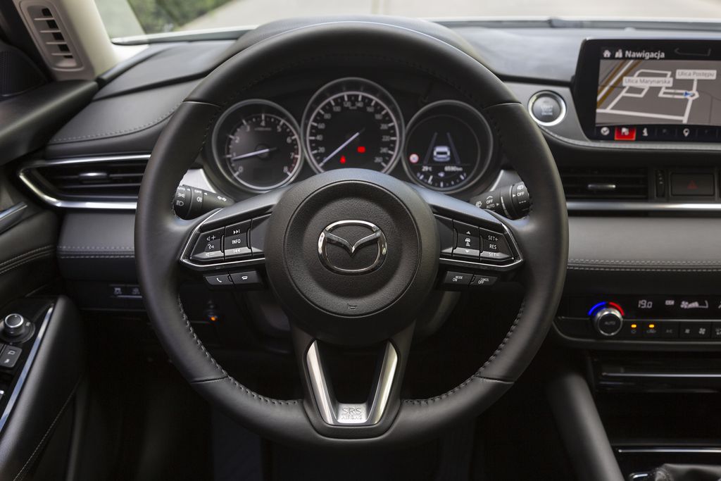 Za komfort i bezpieczeństwo podczas weekendowych i wakacyjnych wyjazdów dbają liczne elementy wchodzące w skład wyposażenia seryjnego Mazdy6. Samochód w standardzie ma kolorowy wyświetlacz head-up na przedniej szybie, aktywny tempomat i reflektory LED ze spryskiwaczami. Pewność dojazdu do celu daje fabryczny system nawigacji, a podróż umili interfejs Apple Car Play/Android auto, który ułatwia połączenie ze smartfonem. Listę wyposażenia uzupełniają systemy bezpieczeństwa: monitorujący martwe pole w lusterkach (BSM), wspomagający utrzymanie samochodu w pasie ruchu (LAS), czy rozpoznający znaki ograniczenia prędkości (TSR). Za przyjemną atmosferę we wnętrzu dba automatyczna klimatyzacja, a prowadzenie ułatwia wielofunkcyjna kierownica obszyta skórą.