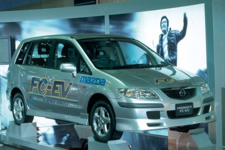 Przenosząc się w lata 90. ubiegłego wieku widzimy, że, podczas gdy wielu producentów dopiero rozważało samochody z ogniwami paliwowymi, Mazda już konstruowała takie pojazdy. Wystawiony w 1997 r. na targach w Kioto model Demio FCEV napędzany zasilanym wodorem, kompaktowym układem napędowym, jest uważany za jedną z pierwszych na świecie sensownych koncepcji samochodu osobowego z ogniwami paliwowymi. Następnie, w 2001 r., firma rozpoczęła publiczne testy drogowe samochodu Premacy FCEV, który wykorzystywał reforming parowy do konwersji metanolu na wodór do zasilania ogniw paliwowych.