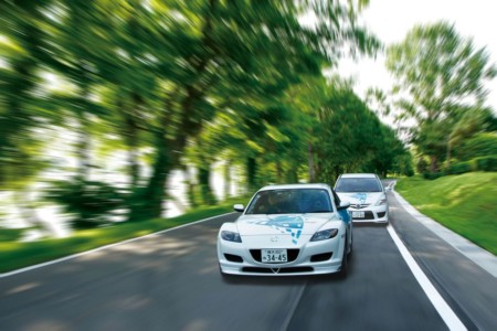 Mazda RX-8 Hydrogen RE zaprezentowana na targach motoryzacyjnych w Tokio w 2003 r. trafia do sprzedaży w Japonii na zasadach leasingu. Jej rotorowy układ napędowy przystosowany do pracy na dwóch rodzajach paliwa – wodoru lub benzyny – znalazł również zastosowanie w minivanie Mazda Premacy Hydrogen RE Hybrid oferowanym w podobnym systemie leasingu. Ten model wyposażony był w układ „miękkiej” hybrydy, i charakteryzował się większą mocą i zasięgiem niż RX-8. Kompaktowy minivan znany w Europie jako Mazda5, została później wyposażona w silnik elektryczny zasilany z akumulatorów trakcyjnych i zasilany wodorem silnik Wankla pełniący funkcję generatora energii elektrycznej (range extender). W 2013 r. Mazda wprowadziła na rynek prototypową wersję Mazdy2/Demio EV, czyli limitowaną edycję miejskiego modelu z elektrycznymi akumulatorami, z niewielkim jednorotorowym silnikiem o pojemności 330 cm³, który pozwalał podwoić zasięg samochodu i pracował zarówno na benzynie, propanie lub butanie.