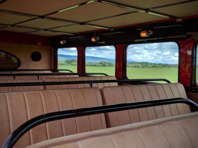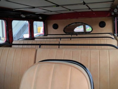 We wnętrzu zachowano patynowaną drewnianą podłogę, która została jedynie odnowiona. Siedzenia pokryto włoska skórą, ale chociaż oferują one komfort XXI wieku, to jednak zachowały styl retro. We wnętrzu pozostały oryginalne zegary i wszystkie mechaniczne dźwignie wraz z cienkim kołem kierownicy.