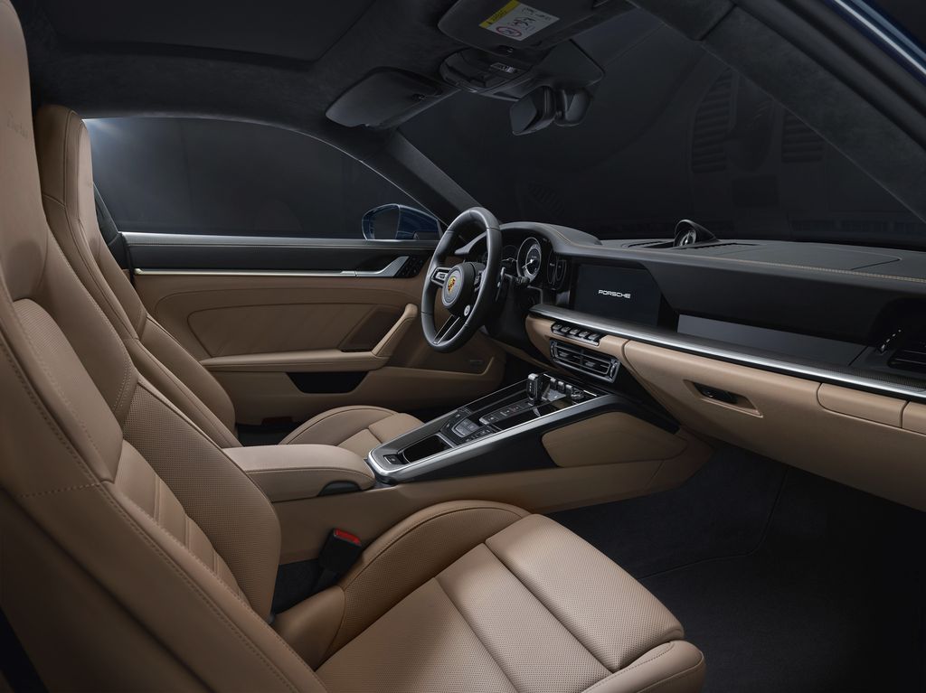 Podstawowe „składowe” nowoczesnego wnętrza odpowiadają tym w modelach 911 Carrera – na czele z koncepcją Porsche Advanced Cockpit i konsolą środkową Direct Touch Control. Środkowy ekran PCM ma teraz przekątną 10,9 cala, a dzięki nowej architekturze można go obsługiwać szybko i bez rozpraszania uwagi. Lista wyjątkowo wysokogatunkowego, bogatego wyposażenia obejmuje sportowe fotele z pełną, 14-kierunkową regulacją elektryczną, pakiet Sport Chrono, kierownicę sportową GT z łopatkami zmiany biegów i przełącznikami wielofunkcyjnymi oraz trybów jazdy, a także imponujące nagłośnienie przestrzenne BOSE®. Na dalszą personalizację pozwalają liczne opcje wyposażenia, w tym Porsche InnoDrive z adaptacyjnym tempomatem, Asystent utrzymania pasa ruchu z funkcją rozpoznawania znaków drogowych, Asystent jazdy nocą, kamery 360° czy system audio Burmester® High-End Surround Sound System.