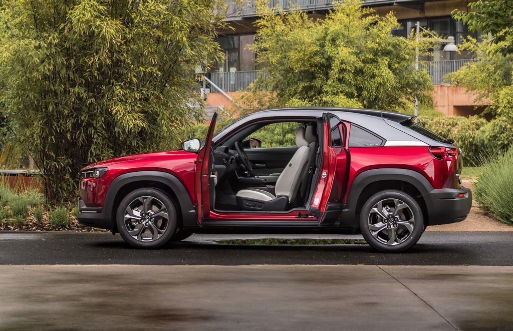 Mazda MX-30 ma drzwi typu freestyle, bez środkowego słupka. Są one wyposażone w specjalnie zaprojektowane zawiasy, dzięki czemu drzwi przednie otwierają się aż do kąta 82°, a tylne do tyłu, do kąta 80°.
