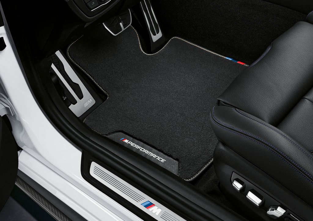 Kierownica M Performance Pro jest dostępna wyłącznie w modelach BMW M5 i BMW M5 Competition. Została wykończona błyszczącym karbonem i alcantarą, a jej dolne ramię ozdobiono napisem M Performance. Oznaczenie na godzinie 12 wykończono kolorem niebieskim Motorsport, a trójkolorowy szew ozdobny wykonany jest w trzech kolorach BMW M. Karbonowe łopatki zmiany biegów M Performance są także dostępne do wszystkich innych kierownic. Karbonowe wykończenie dźwigni biegów M Performance jest dostępne wyłącznie w modelach BMW M5 i BMW M5 Competition.