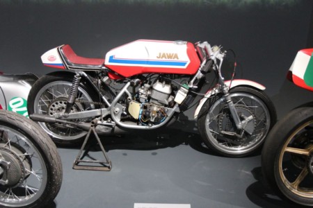 Wśród prezentowanych motocykli możemy podziwiać międzywojenne prototypy od początku lat trzydziestych XX wieku, a także z tajnych prac w okresie okupacji. Wśród wyczynowych motocykli jest też Jawa 350 typ 673, na której z dużymi sukcesami startował František Šťastný.