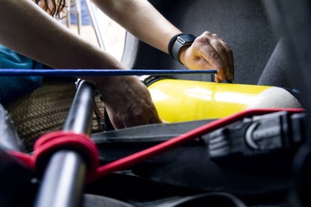 Wiosła czy butle z tlenem przewożone w bagażniku muszą być bezpiecznie zamocowane, aby uniknąć nieszczęśliwych wypadków. Łopatkę wiosła należy skierować do przodu, a całe akcesorium przypiąć do obu stron samochodu za pomocą linki. Butle z tlenem powinny leżeć płasko i prostopadle do linii siedzeń. Aby uniemożliwić przesuwanie się i obracanie sprzętu podczas jazdy, konieczne jest zabezpieczenie go pasami.