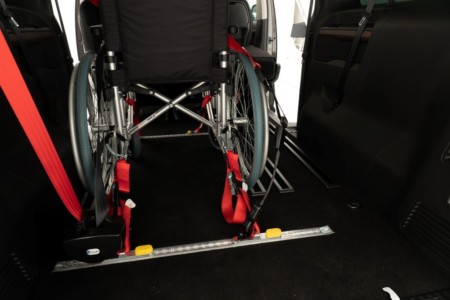 We wnętrzu zamiennie z trzecim rzędem siedzeń jest montowany kompleksowy, atestowany zestaw do zabezpieczenia podróżnego na czas jazdy, który składa się z listew cargo na podłodze, pasów mocujących wózek oraz 3-punktowych pasów bezpieczeństwa dla pasażera. Samochód otrzymuje także wzmocnienia powierzchni podłogi w miejscu mocowania wózka oraz wymagane przez prawo ruchu drogowego oklejenie samochodu emblematami informującymi o przewozie osób niepełnosprawnych wraz z kierunkowskazami dachowymi LED.