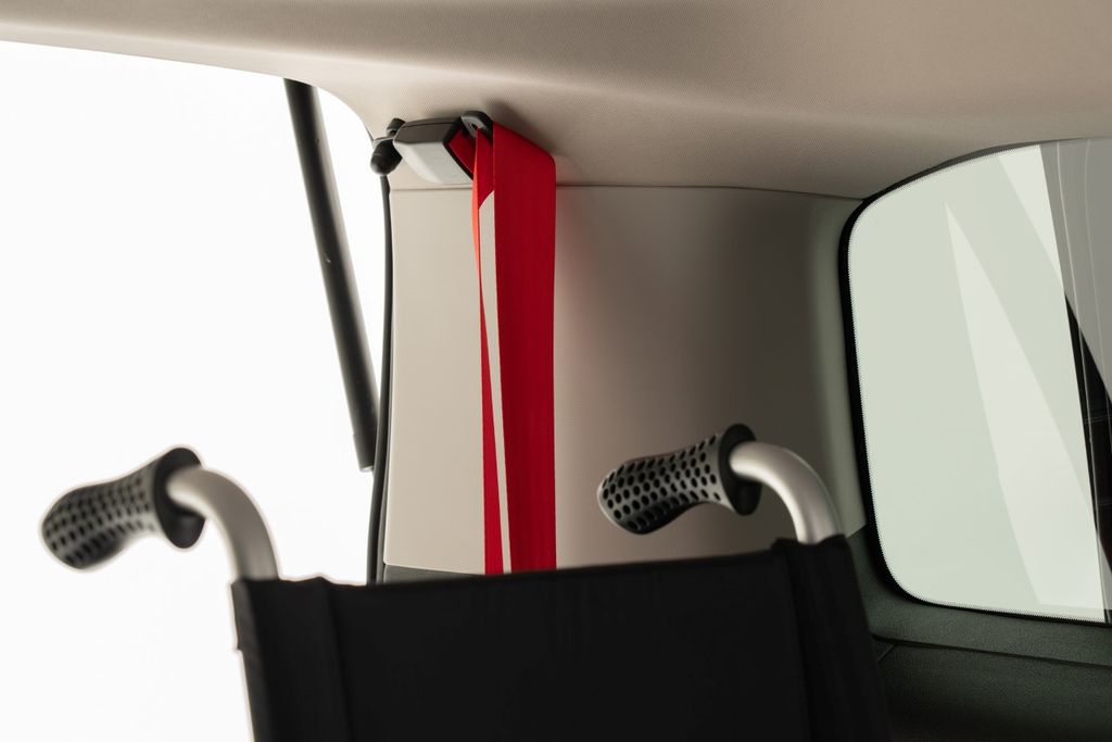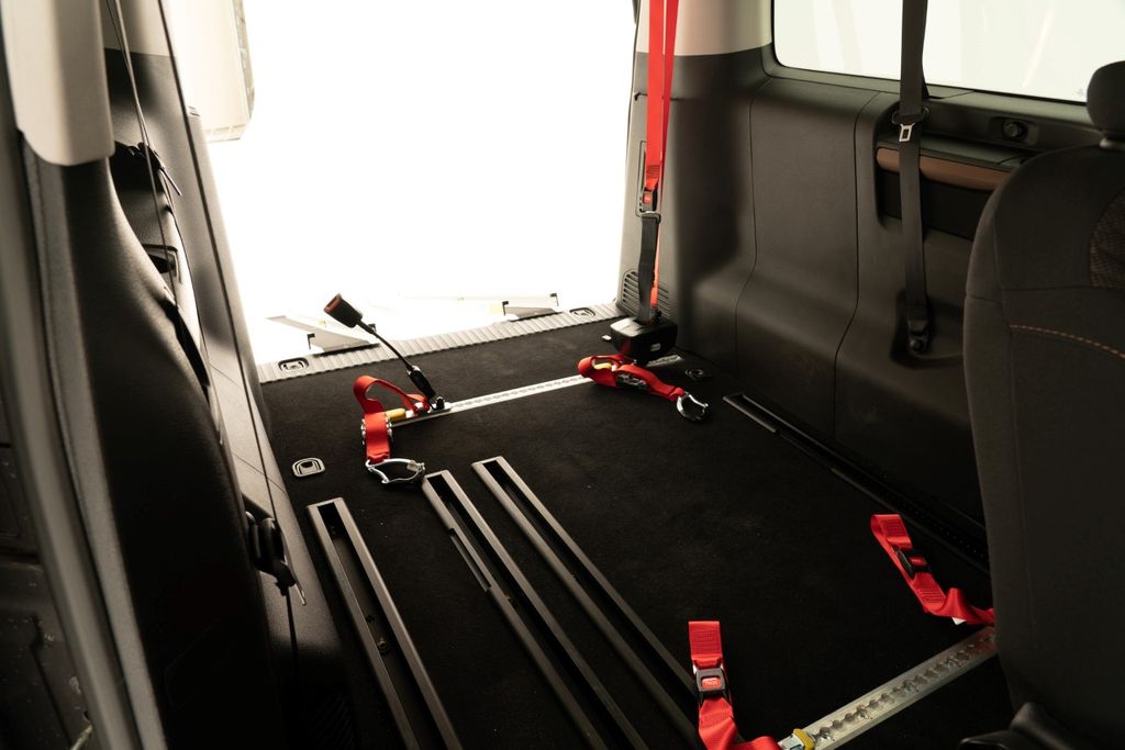 We wnętrzu zamiennie z trzecim rzędem siedzeń jest montowany kompleksowy, atestowany zestaw do zabezpieczenia podróżnego na czas jazdy, który składa się z listew cargo na podłodze, pasów mocujących wózek oraz 3-punktowych pasów bezpieczeństwa dla pasażera. Samochód otrzymuje także wzmocnienia powierzchni podłogi w miejscu mocowania wózka oraz wymagane przez prawo ruchu drogowego oklejenie samochodu emblematami informującymi o przewozie osób niepełnosprawnych wraz z kierunkowskazami dachowymi LED.