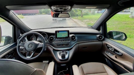 Testowa Klasa V miała na pokładzie tempomat adaptacyjny, który dostosowywał prędkość do pojazdów z przodu. W tego typu aucie przydaje się również kamera 360 stopni, która ułatwia manewry zwłaszcza w ciasnych miejscach.
