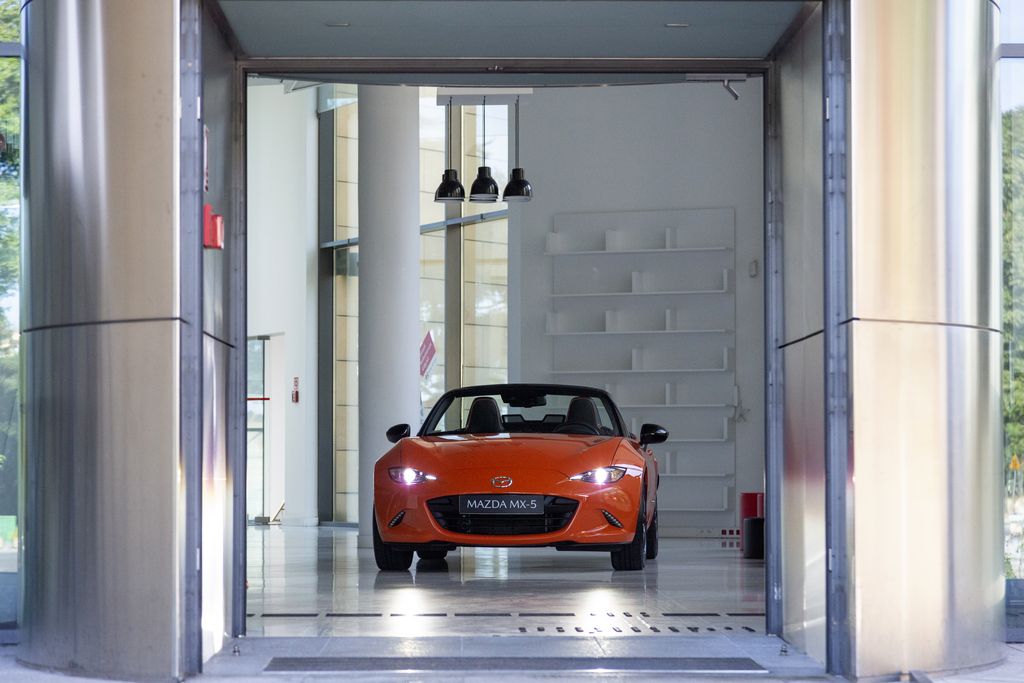 Muzeum Miasta Gdyni jeszcze nigdy nie gościło w swoich murach żadnego samochodu, a samo wstawienie Mazdy MX-5 do foyer muzeum wiązało się z dużym wyzwaniem logistycznym. Samochód najpierw został wstawiony dźwigiem na szczyt schodów prowadzących do budynku, a następnie wjechał do wnętrza po zdjęciu szklanych drzwi wejściowych. Do tego celu wykorzystano specjalny podest z najazdami zawieszony na parcianych pasach.
