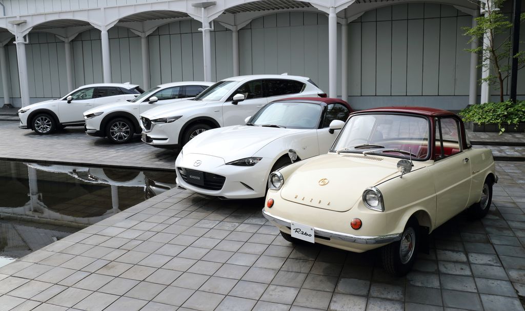 Pierwszy produkowany seryjnie samochód osobowy, Mazda R360 pojawił się na rynku w 1960 r. w szerokiej gamie świeżych kolorów, w tym w miętowej zieleni, błękicie nieba czy jaskrawej czerwieni, co wyraźnie odróżniało go od białej kolorystyki samochodów dominującej u konkurencji. Mimo, że był to niedrogi mikrosamochód, oferowano go nawet w wersji z dwukolorowym wykończeniem. Połączenie białego nadwozia z burgundowym dachem dodawało uroku czteromiejscowemu coupé, a jego sylwetce – wyrafinowanej lekkości, podkreślając jednocześnie charakterystyczne dla Mazdy zainteresowanie niekonwencjonalnym wzornictwem i rozwiązaniami technicznymi zorientowanymi na kierowcę, co zresztą trwa do dziś. Mazda R360 od razu stała się hitem sprzedażowym, zyskując w 1960 r. prawie dwie trzecie swojego segmentu rynku w Japonii i spełniając marzenie dziesiątek tysięcy osób o posiadaniu własnego samochodu.