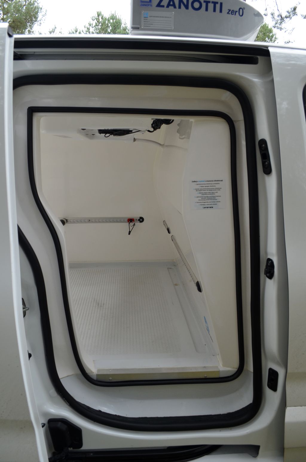 Dwuskrzydłowe tylne drzwi zostały przykręcone do oryginalnych drzwi nierdzewnymi śrubami. Zarówno tylne, jaki boczne drzwi dodatkowo uszczelniono. Drzwi z tyłu można otworzyć o kąt 180stopni, wówczas nie są zablokowane,więc trzeba uważać, żeby się same nie zamknęły. Chłodnia została wyposażona w linkę do awaryjnego otwierania drzwi od środka.We wnętrzu zastosowano aluminiowe listwy odbojowe oraz listwy do mocowanie przewożonego ładunku z 6 uchwytami. Blach-Trans zamontował również LED-owe oświetlenie, które można włączyć przełącznikiem w kabinie. Bardzo dobrze oświetlało ładownię.