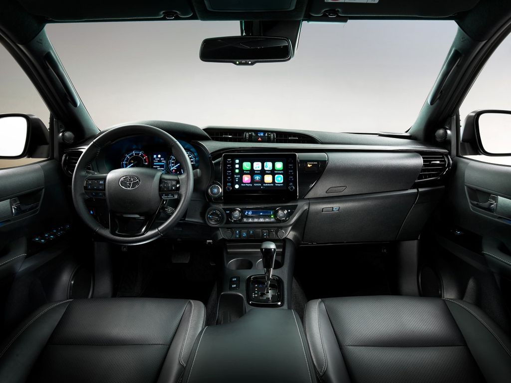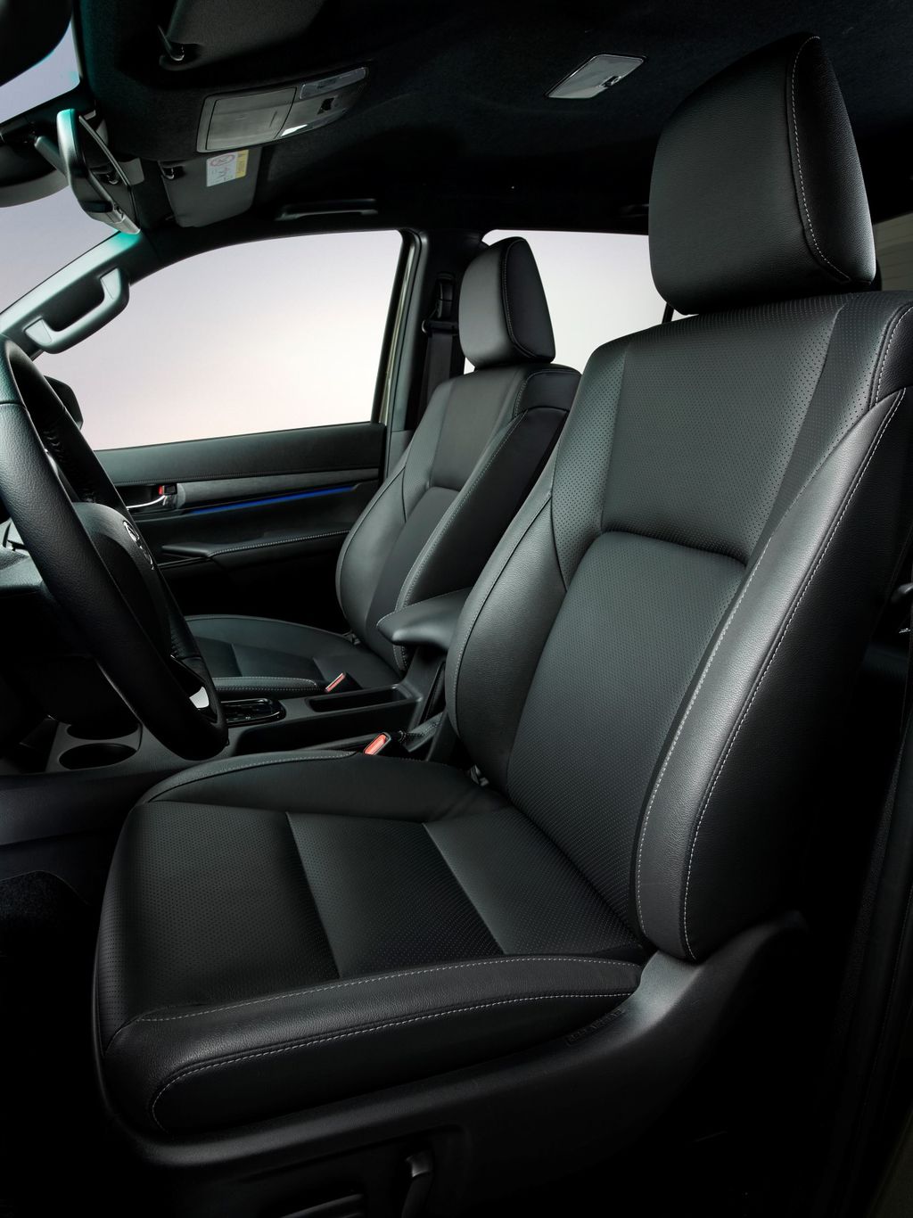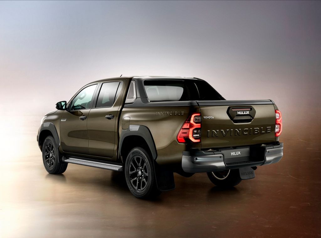 Nowy Hilux Invincible z 204-konnym silnikiem 2.8 i napędem 4×4 wyróżnia się elektryczną roletą przestrzeni ładunkowej, czarną sportową nakładką przestrzeni ładunkowej, podświetleniem drzwi clear blue i specjalną okleiną Invincible. Standardowo w tej wersji znajduje się także automatyczna klimatyzacja i skórzana tapicerka, hak holowniczy z 13-stykowym gniazdem elektrycznym, a także zestaw nagłośnienia klasy premium marki JBL z 9 głośnikami, który współpracuje z systemem multimedialnym z ekranem dotykowym 8’’, Apple CarPlay® i Android Auto™.