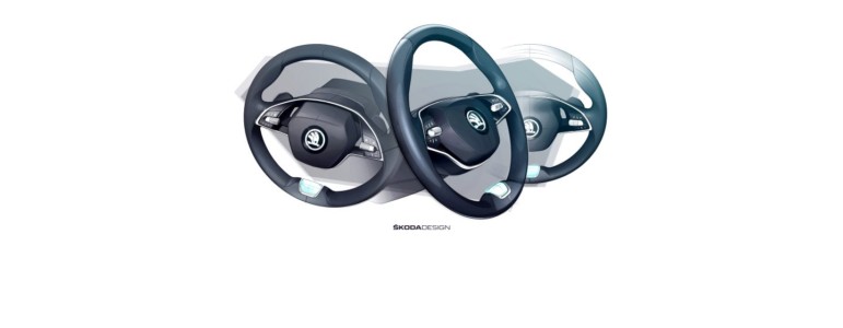 Rozmieszczenie elementów sterujących jest spójne z logiką zastosowaną przez ŠKODĘ w poprzednich wersjach projektowych, z wyjątkiem bardziej charakterystycznych elementów obrotowych. Poziome przedłużenie obrotowych urządzeń sterujących łączy się z innymi liniami wewnętrznymi. Kierownica jest niezwykle ergonomiczna, a obsługa elementów sterujących intuicyjna. Ogólny układ elementów gwarantuje kierowcy, że zawsze jest świadomy kąta skręcenia kierownicy. Dlatego w dolnej części kierownicy znajduje się małe trzecie ramię.