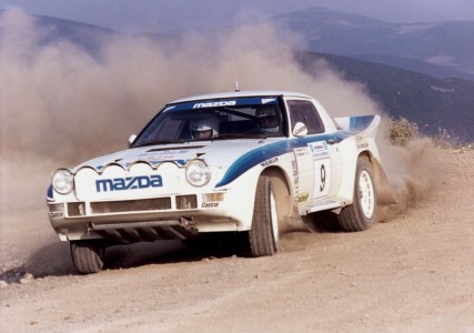 Historia osiągnięć Mazdy RX-7 na wyścigowych torach jest dobrze udokumentowana, ale jej sukcesy rajdowe są mniej znane. W dniu 1 lutego 1984 r. RX-7 została homologowana do rajdów w Grupie B. Program B-grupowej RX-7 został stworzony przez Mazda Rally Team Europe z siedzibą w Belgii, spółkę założoną przez niemieckiego kierowcę rajdowego Achima Warmbolda. W odróżnieniu od innych samochodów z Grupy B, które miały napęd na cztery koła, RX-7 miała napęd na tył. Mimo to samochód odnotował kilka sukcesów wygrywając w 1984 roku polską rundę Rajdowych Samochodowych Mistrzostw Europy. Bardziej znanym sukcesem było trzecie miejsce w Rajdzie Akropolu w serii Rajdowych Samochodowych Mistrzostw Świata w 1985 roku z Ingvarem Carlssonem za kierownicą. Kiedy jednak pod koniec 1986 r. zakazano udziału w rajdach samochodom z Grupy B, Mazda RX-7 została zapamiętana przez fanów tego sportu z uwagi na silnik Wankla plujący płomieniami z wydechu i spektakularną technikę jazdy w uślizgu bocznym, wymuszoną przez układ napędu na tylne koła.