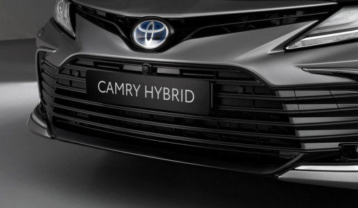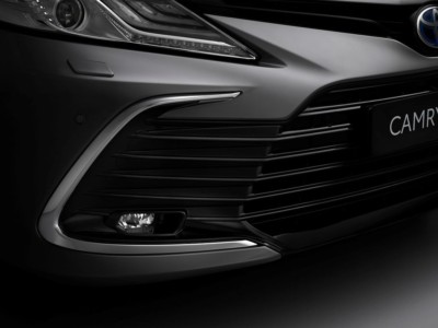 Hybrydowa Toyota Camry otrzymała nowy przedni zderzak oraz nowy projekt górnego i dolnego grilla, dzięki którym wygląda nowocześniej i bardziej stabilnie. Dolny grill może być wykończony w kolorze czarnym lub ciemnoszarym, natomiast na jego brzegach pojawiają się detale w kolorze chromowanym lub srebrnym.