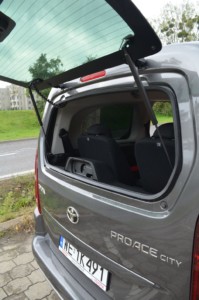 Toyota Proace City Verso w wersji wydłużonej jest o 35 cm dłuższe od wersji standardowej, ma 4750 mm. Ta różnica ma szczególne znaczenie w przypadku samochodu 7-osobowego, ponieważ zostaje jeszcze trochę miejsca na bagaże. W wersji standardowej za 3. rzędem siedzeń mamy do dyspozycji zaledwie 236 mm, w wydłużonej – co najmniej 418 mm.