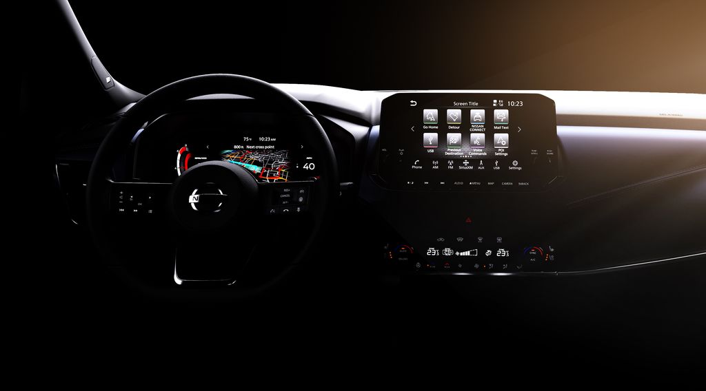 Nowy wielofunkcyjny ekran TFT wysokiej rozdzielczości o przekątnej 12,3” oferuje możliwość konfiguracji różnych sposobów wyświetlania informacji z systemu nawigacji, rozrywki, danych o ruchu i stanie pojazdu przy pomocy nowego pokrętła na kierownicy. Ukłonem w kierunku japońskiego rodowodu Nissana jest cyfrowe tło ekranu o tradycyjnej fakturze kryształowego szkła „Kiriko”.