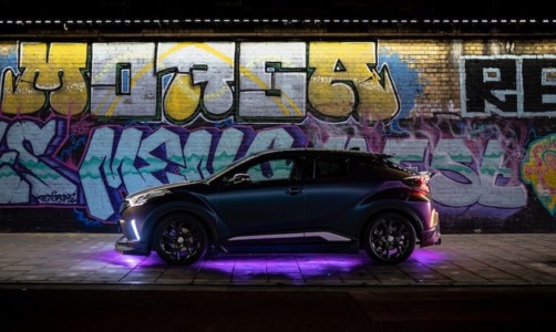 „Z tego co wiem, mój samochód to jedyny hybrydowy C-HR z pełnym pakietem Aggressive” – powiedziała O’Donoghue. Auto zostało pokryte mieniącą się kolorami okleiną marki Avery Dennison, z ochronną powłoką ceramiczną.