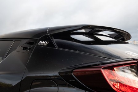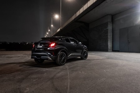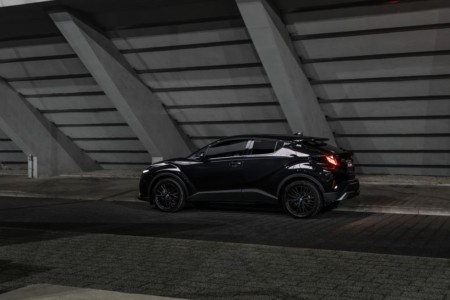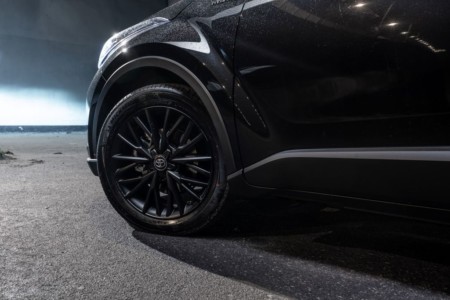 Toyota C-HR Hybrid Black Edition została całościowo wykończona w czarnym kolorze, zarówno z zewnątrz, jak i we wnętrzu. Nadwozie pokryto lakierem Eclipse Black, który podkreśla ostre linie i przetłoczenia karoserii tego stylowego crossovera. Czarne wykończenie otrzymały także zderzaki, przedni grill oraz tylny spojler. Charakter auta podkreślają 18-calowe aluminiowe felgi wykończone czarnym matem. Z konsekwentnym czarnym wykończeniem całego nadwozia kontrastują jedynie srebrne nakładki na przedni i tylny zderzak.
