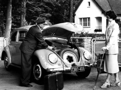 Powojenną produkcję seryjną w Wolfsburgu Volkswagen zainaugurowano 27 grudnia 1945 roku, gdy z taśmy zjechał pierwszy egzemplarz Volkswagena Type 1. Znany jako m.in. Käfer (chrząszcz), Beetle, Fusca czy Garbus. Produkowany był do 30 lipca 2003 roku. W ciągu 58 lat powstało 21 529 464 egzemplarzy, z czego 15 444 858 w Niemczech i około 3 350 000 w Brazylii.
