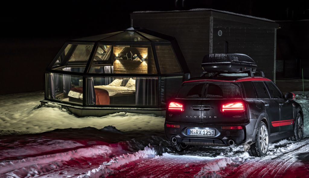 Wiele miejsc w Laponii oferuje możliwość obserwacji lisów polarnych, sów śnieżnych i innych zwierząt w ich naturalnym otoczeniu. Ponadto chęć zobaczenia zorzy polarnej podczas długiej zimowej nocy przyciąga na daleką północ turystów z całego świata. Gdy tylko temperatury i widoczność staną się idealne dla tego naturalnego zjawiska, trzeba się spieszyć, aby dotrzeć na czas do odpowiedniego punktu obserwacyjnego. W MINI John Cooper Works Clubman także ta dodatkowa wycieczka jest czystą przyjemnością. Podczas nocnego „kuligu na 306 koni” opcjonalne diodowe reflektory adaptacyjne z funkcją matrycową dla świateł drogowych wskazują drogę do jednego z tych miejsc, gdzie szczególnie dobrze można obserwować kolorowy spektakl na niebie.