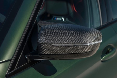 Model specjalny BMW M5 CS różni się od BMW M5 Competitionwyjątkowymi złotobrązowymi akcentami i elementami nadwozia z karbonu (CFRP), z których niektóre mają widoczną strukturę włókien. Oprócz obramowania atrapy chłodnicy BMW, w kolorze złotobrązowym wykonane są również 20-calowe kute obręcze kół M Y Spoke oraz znaczki BMW M5 CS na grillu, skrzelach M na przednich błotnikach i na klapie tylnej. Listwy progowe mają podświetlane znaczki M5 CS. Maska BMW M5 CS jest wykonana w całości z karbonu, a wyloty powietrza mają widoczną strukturę włókien. Z karbonu wykonany jest też przedni splitter, lusterka zewnętrzne, dodatkowy tylny spojler na pokrywie bagażnika i dyfuzor tylny. Oprócz funkcji aerodynamicznej, komponenty te, a także osłona silnika M Power z kolorową plakietką M oraz tłumik wlotu powietrza z karbonu o widocznej strukturze włókien, zmniejszają masę pojazdu o około 70 kg w porównaniu z BMW M5 Competition. Cztery końcówki rur sportowego układu wydechowego M5 CS wykonane ze stali szlachetnej mają jeszcze bardziej purystyczny charakter niż w BMW M5 Competition.