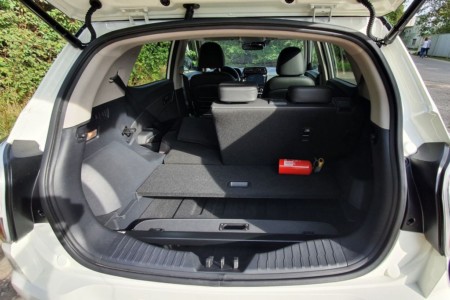 Od góry to, co przewozimy zakrywa zwijana roleta. Gdy potrzebujemy ją zdemontować, można ją wygodnie umieścić w specjalnie pomyślanym dla niej miejscu. Bagażnik oczywiście możemy powiększyć składając oparcia tylnej kanapy,dzielone 40:60. Wówczas mamy równą powierzchnię z drugim poziomem w bagażniku. Z tyłu mamy też do dyspozycji gniazdo 12 V, które może nam podczas jazdy służyć np. do podłączenia lodówki turystycznej. Sporym ułatwieniem jest też elektryczna klapa z tyłu, którą otwieramy zdalnie pilotem. Drobiazg a cieszy.