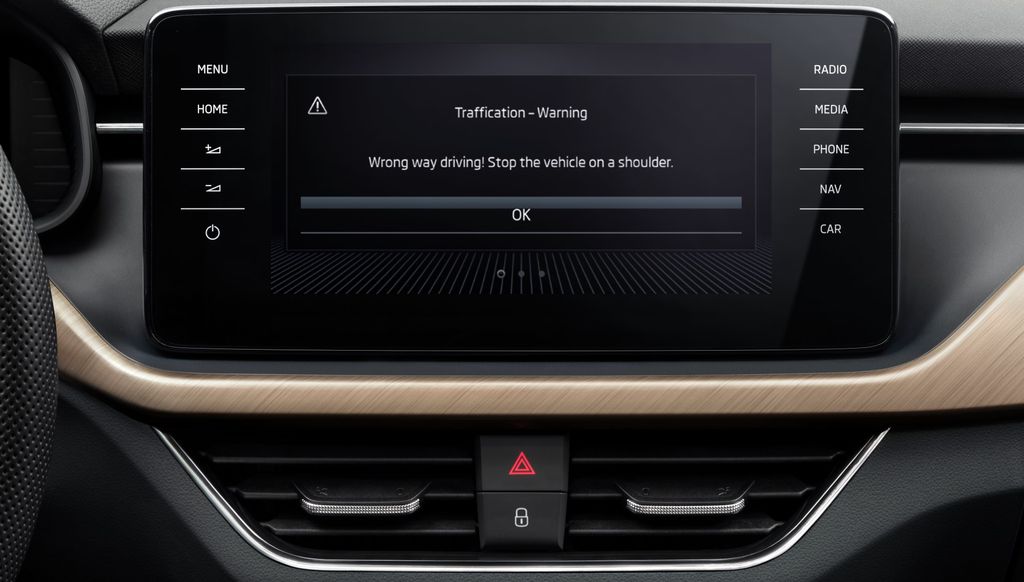 Do aplikacji systemów Infotainment, takich jak pogoda, wiadomości, kalendarz i marketplace, dołączyła właśnie aplikacja Traffication. Po zainstalowaniu działa ona w tle, ale gdy na zbliżającym się odcinku drogi pojawia się zagrożenie, aplikacja natychmiast wyświetla ostrzeżenia na centralnym wyświetlaczu Infotainment, które ostrzegają przed omyłkowym wjechaniem na autostradę pod prąd. Wczesne ostrzeżenie jest również wyświetlane, gdy system wykryje na drodze unieruchomione pojazdy z włączonymi światłami awaryjnymi. Aby na wyświetlaczu centralnym pojawił się stosowny komunikat ostrzegawczy, te samochody również muszą być wyposażone w aplikację Traffication. W przyszłości ostrzeżenia będą wysyłane ze wszystkich nowych pojazdów ŠKODY wyposażonych w systemy oparte na modułowej platformie Infotainment od trzeciej generacji wzwyż.