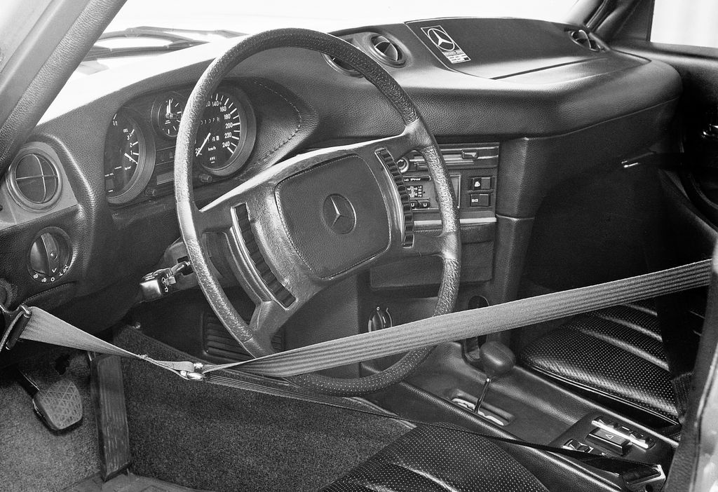 W 1958 r. Mercedes-Benz wprowadził dwupunktowe pasy bezpieczeństwa jako opcjonalne wyposażenie dla całej gamy aut osobowych z pojedynczymi fotelami z przodu. Np. w przypadku modelu 220 S (typoszereg W 180) cena wynosiła 120 DM za fotel, a w przypadku 300 d (W 189) – 150 DM za fotel. Pod koniec roku wprowadzono dostępne na życzenie pasy biodrowe dla podróżujących z tyłu. Zwolennikiem tego rozwiązania był także Konrad Adenauer, pierwszy kanclerz Republiki Federalnej Niemiec – jego „służbowy” Mercedes był wyposażony w pas biodrowy z tyłu. Mercedes-Benz wprowadził trzypunktowe pasy z automatycznym zwijaczem jako standardowe wyposażenie dla przednich foteli w 1973 r., a w 1979 r. – także dla tylnych. Zmieniał się nie tylko sposób, w jaki pas bezpieczeństwa owijało się wokół ciała, ale także jego mocowanie: w SL-u z serii R 107 (debiut w 1971 r.) wprowadzono pasy bezpieczeństwa mocowane do dolnej części siedzenia.