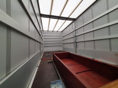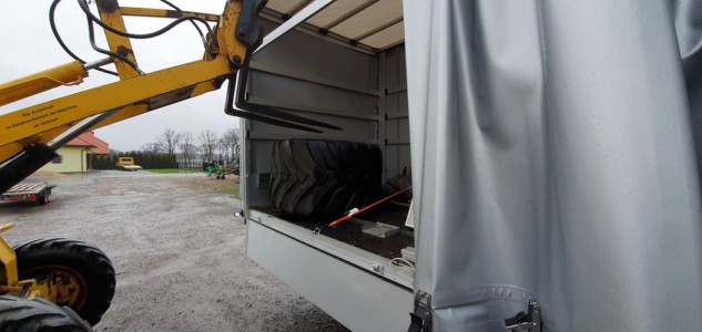 Podłogę wykonano ze sklejki antypoślizgowej dwustronnie foliowanej z jednostronnym odciskiem siatki. Tutaj też można zamówić osłony przeciwnajazdowe oraz skrzynkę narzędziową i zbiornik na wodę.