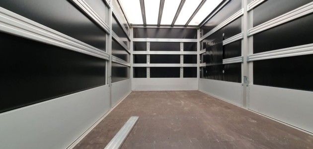 Podobnie jak w przypadku zabudowy Carpol, zabudowa Nadwozia-Partnerma ma aluminiowe burty o wysokości 400 mm i plandekę. Jest natomiast dłuższa – 5200 mm i odrobinę szersza– 2200 mm. Dach znajduje się na wysokości 2300 mm. W tym przypadku burtofirankę zastosowano z dwóch stron. Plandeka jest naciągana za pomocą napinaczy i zapinana klamrami.Uchwytów do mocowania ładunku jest 12.