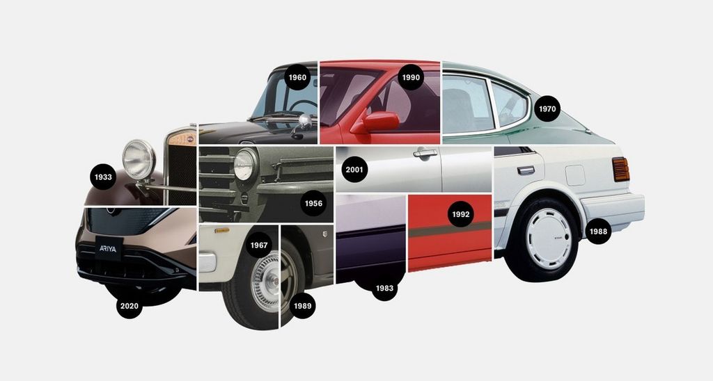 Jeżeli jednak przyjrzymy się samym samochodom Nissana na przestrzeni tych dziesięcioleci, trudno jest dostrzec oficjalne logo marki. Zamiast niego pojawia się cała gama emblematów z nazwą marki, reprezentujących różne style graficzne.