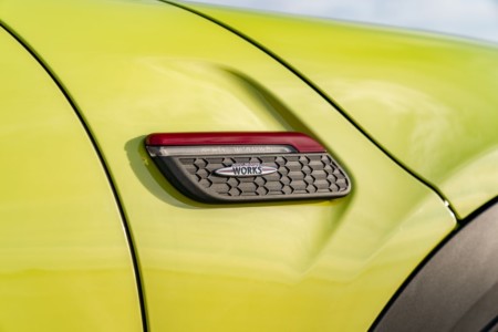 Ten jaskrawożółty odcień podkreśla żywiołowy charakter MINI Cabrio. Minimalistyczny język kształtów sprawia, że charakterystyczne cechy stylistyczne marki są jeszcze bardziej podkreślone. Sześciokątna atrapa chłodnicy jest teraz większa i bardziej wyrazista, a czarne, wewnętrzne obudowy nadają okrągłym reflektorom jeszcze bardziej ekspresyjny wygląd. Standardowe moduły diodowe świateł mijania i drogowych zapewniają jasne i równomierne oświetlenie drogi. Miejsce reflektorów przeciwmgielnych zajęły teraz pionowe wloty powietrza.