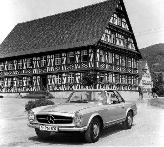 Podczas salonu samochodowego w Genewie w 1963 r. Mercedes-Benz zaprezentował następcę roadsterów 190 SL (W 121) i 300 SL (W 198) – model 230 SL (W 113). Zaprojektowano go jako wygodny, dwumiejscowy samochód turystyczny o wysokich osiągach. Design karoserii definiowały proste, oszczędne linie, a opcjonalny hardtop z wysokimi oknami, smukłymi słupkami i wklęsłym dachem swoim wyglądem przywodził na myśl azjatyckie świątynie – stąd W 113 szybko zyskał przydomek „Pagoda”. Platformy użyczyły mu „skrzydlaki” serii 111, pierwsze samochody osobowe na świecie z tzw. bezpiecznym nadwoziem. Również nowy SL skorzystał z tej koncepcji. Podwozie pochodzące z sedana 220 SE przystosowano do potrzeb samochodu sportowego –z zachowaniem wysokiego poziomu komfortu. Z sedana pochodził także 6-cylindrowy silnik, który na potrzeby SL-a został jednak zmodyfikowany. 2,3-litrowa jednostka rozwijała moc 110 kW (150 KM).
