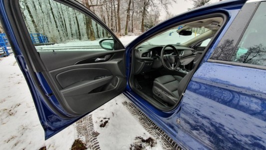 Jeżeli nie jesteśmy przyzwyczajeni do tego typu samochodów, pierwsze wrażenie za kierownicą Insignii może lekko zaskoczyć. Przede wszystkim fotel może być położony nisko, zapewniając pozycję półleżącą– w dobie crossoverów powoli zapominamy o niej w samochodzie. Oczywiście fotel można podwyższyć, ale wówczas rozsiadamy się w nim wygodnie właśnie jak w fotelu, a nie na krzesełku, do czego coraz częściej przyzwyczajają nas producenci. W tym wypadku fotel był sportowy, ergonomiczny z certyfikatem AGR (niemiecka organizacja AktionGesunderRuckene.V., czyli Akcja na rzecz Zdrowych Pleców), z możliwością regulacji w 18 miejscach, zaprogramowaniem dwóch ustawień, masażem, podgrzewaniem i wentylacją. I trzeba przyznać, że w tym fotelu można spędzić dużo czasu za kierownicą. Kierowca ma też do dyspozycji podłokietnik, w moim przypadku jednak znajdował się za daleko. Kierownica oczywiście była regulowana w dwóch płaszczyznach, pokryta skorą, podgrzewana i wielofunkcyjna. Znajdowały się na niej przyciski do obsługi tempomatu i komputera pokładowego.