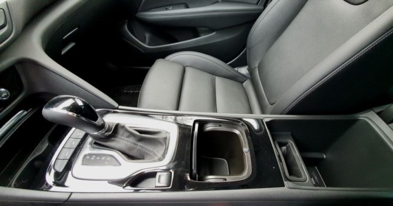 W Insignii jest zarówno elegancko, jaki praktycznie. Konsola środkowa jest nachylona w kierunku kierowcy, co ułatwia obsługę systemu info rozrywki czy klimatyzacji. Pośrodku, pomiędzy przednimi fotelami wygospodarowano zamykane miejsca na dwa kubki, mały zamykany schowek i trochę większy w podłokietniku, gdzie umieszczono również dwa gniazda USB, na kartę SIM i AUX oraz ładowarkę indukcyjną do telefonu. Dodatkowe dwa gniazda USB mieli do dyspozycji również pasażerowie tylnego rzędu. W tym przypadku w ogóle nie powinni oni narzekać, ponieważ sami też mogą sobie regulować nadmuch powietrza oraz ustawiać podgrzewanie siedzisk– każdy z osobna. Miejsca z tyłu jest sporo, ale wyższe osoby mogą mieć głowę blisko sufitu – no cóż nie można mieć wszystkiego.