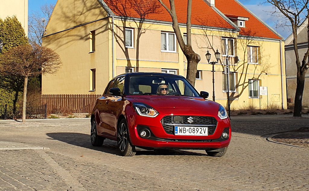 Testowany Swift miał lakier w kolorze Burning Red Pearl Metallic połączony z czarnym dachem, co wygląda naprawdę atrakcyjnie. W tym przypadku wybór koloru wcale nie jest taki oczywisty, bo we wszystkich barwach Swiftowi jest do twarzy.