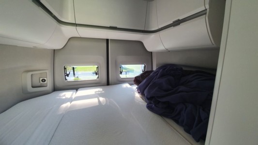 Dyskomfort można jednak poczuć przy ruszaniu, ponieważ dość duże dwa pierwsze przełożenia, charakterystyczne dla samochodów dostawczych sprawiają, że obroty podskakują i w samochodzie jest głośno. Głośno robi się również, gdy droga jest kiepskiej jakości. Wówczas słyszymy zabudowę, co jest jednak nieuniknione w tego typu samochodach. Biorąc pod uwagę całe wyposażenie kampera, włącznie z dużymi butlami z gazem i zbiornikami z wodą oraz jego wysokość, trzeba przyznać, że prowadzi się zaskakująco dobrze. Zapewne swój udział w tym ma tutaj również asystent bocznego wiatru. Bez zastrzeżeń działa również układ kierowniczy,który idealnie dostosowuje się do prędkości pojazdu.